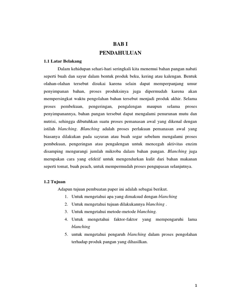 Blanching adalah pdf. BLANCHING DENGAN GAS PANAS Tujuan mengurangi kehilangan zat gizikomponen karena larut air Kerugian. The different of blanching methods gave very significant effect p001 to protein content fat content dan carbohydrate content but gave only significant effect p005 to moisture content and gave bo significant effect p005 to ash content. Teti Estiasih - PS ITP - THP - FTP - UB.