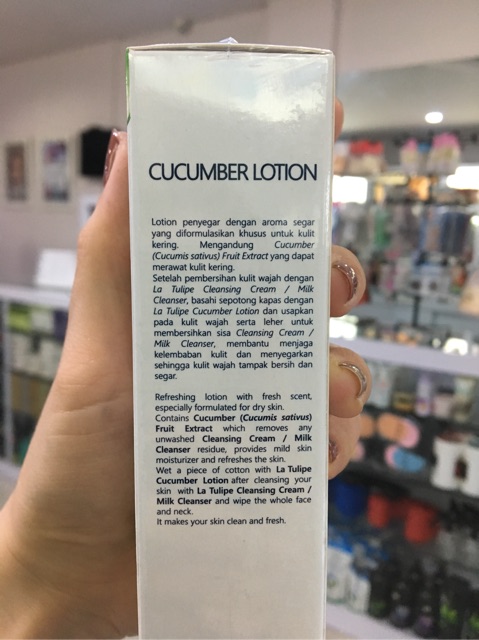 Cucumber lotion la tulipe. Wait for it to dry proceed with mask Mask Face Powder and Rose Water. Use Comedon Extractor to squirt blackheads and apply Acne Lotion. La Tulipe Peeling Lotion mengandung Salicylic Acid yang dapat mendukung kinerja peeling Cream digunakan sebelum menggunakan peeling cream.