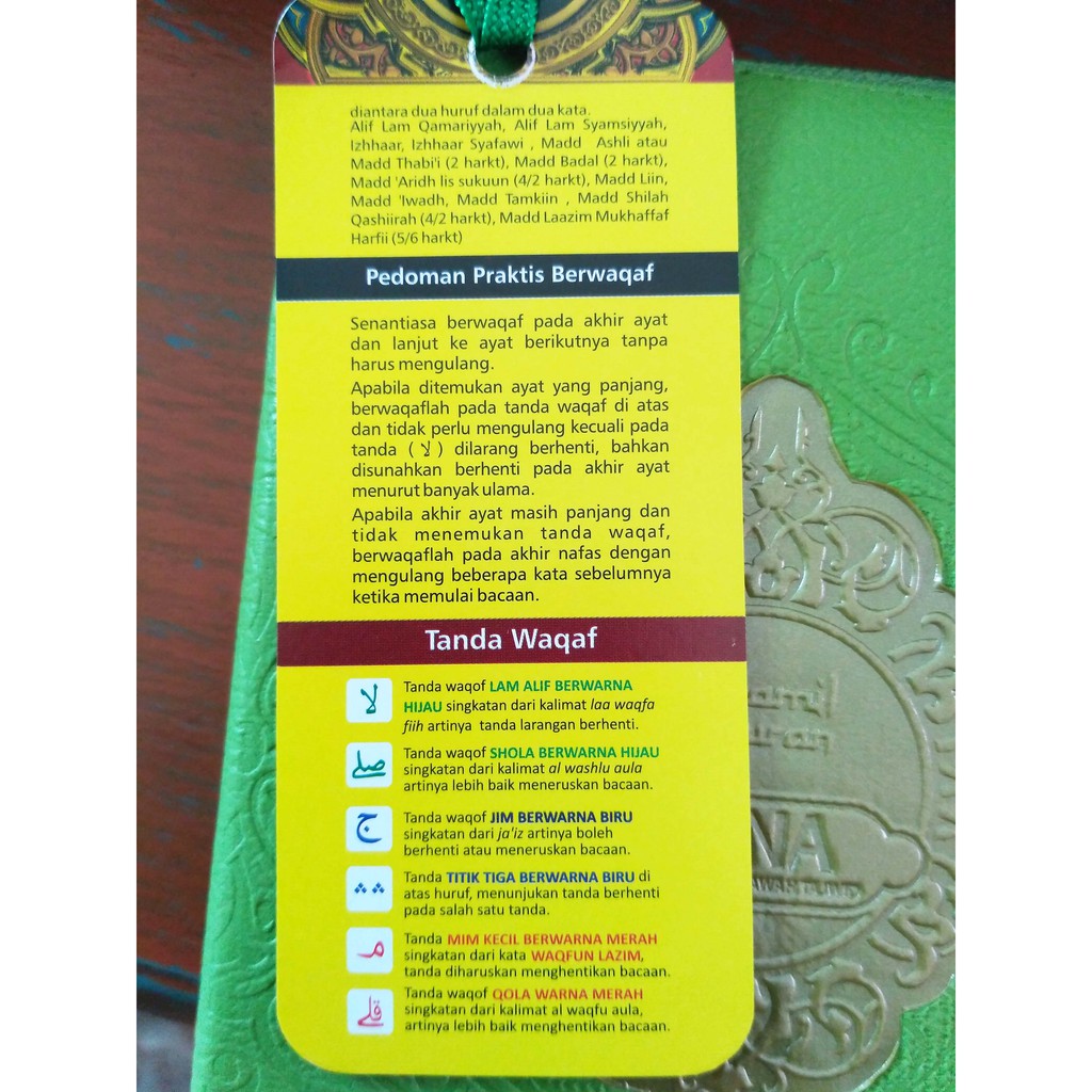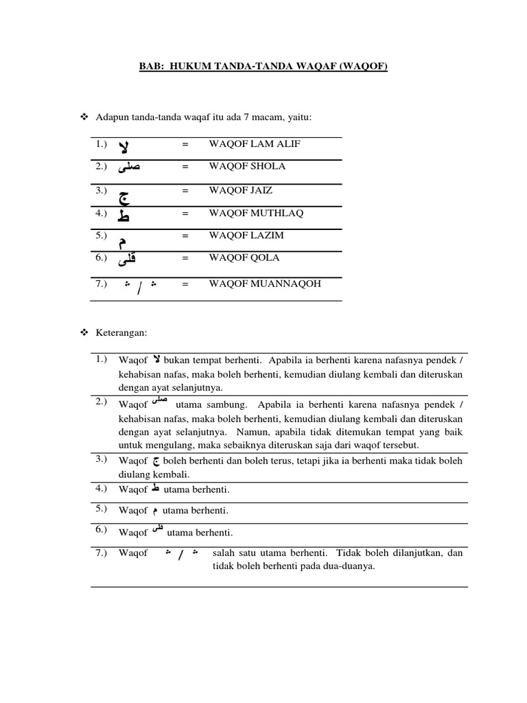 Arti kata seperti kata kama di atas ditampilkan dalam warna yang membuatnya mudah untuk mencari entri dan sub-tema. TANDA-TANDA WAQAF DAN WASHAL. قف الوقف.