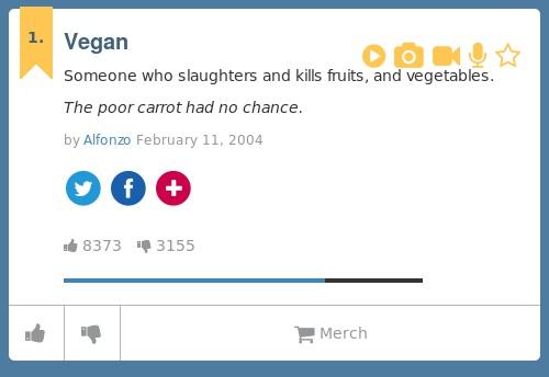 Urban Dictionary On Twitter Jundertraiser Vegan Someone Who Slaughters And Kills Fruits And Vegetables Http T Co K9orlvclq2 Http T Co Uzd2y0lod0