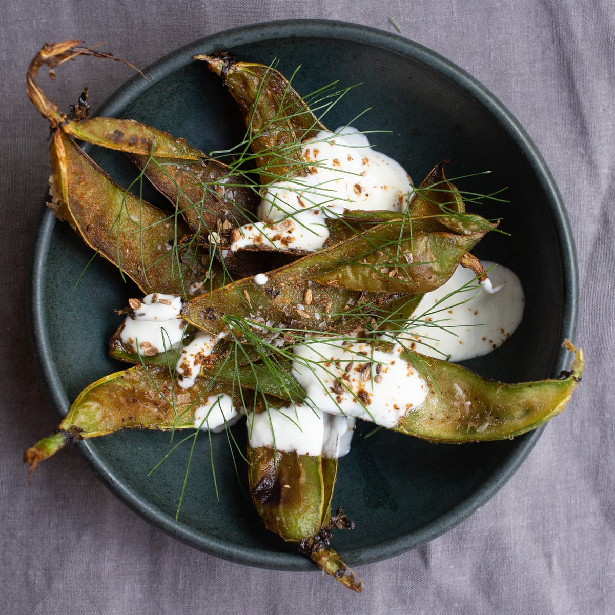Then set them aside to cool. Very young broad beans will have a thinner pod and skin so happily you can eat the whole broad bean pod and all. Just remember that older pods are fibrous a bit like artichoke leaves so discard the chewy core once youve devoured the flesh.