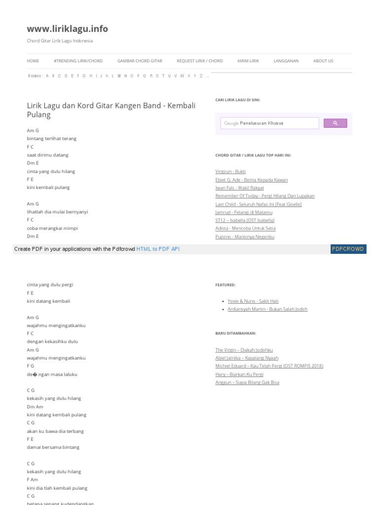 Www Liriklagu Info K Kangen Band Kangen Band Kembali Pulang